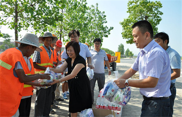 慰問中,丁琦對室外作業(yè)人員在高溫下堅持工作,為園區(qū)建設發(fā)展所付出的辛勤勞動表示感謝,并叮囑他們在工作中要做好防暑工作,注意身體狀況,避開午后高溫時段,更有效率地開展工作。