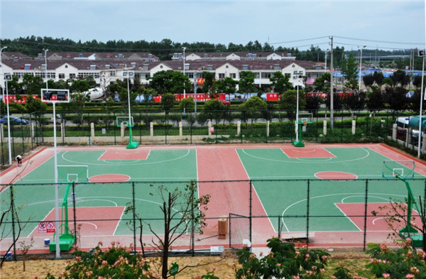 此次投入使用的籃球場均按照國際標(biāo)準(zhǔn)尺寸建設(shè),采用硅-PU地面,具有上硬下彈、緩沖減震、防滑起動等特點(diǎn),既可以增加運(yùn)動緩沖,減輕腳踝、關(guān)節(jié)、韌帶的傷害,又有效解決因地面受濕而引起的打滑現(xiàn)象,保證運(yùn)動中腳感舒適,是一種健康型專業(yè)彈性合成球場地面系統(tǒng)。籃球場還配置了移動式、配有機(jī)玻璃籃板和彈性籃圈的籃球架以及8組球場專用燈光設(shè)備。