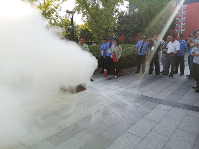 消防隊員現(xiàn)場講解滅火器使用原理,并組織物業(yè)人員、企業(yè)負(fù)責(zé)人現(xiàn)場操作。