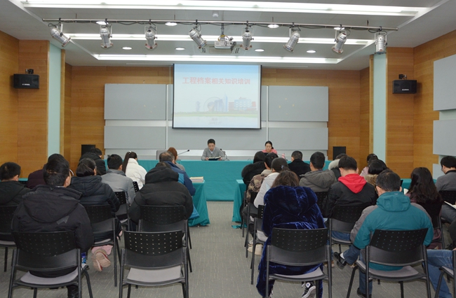 培訓中,公司檔案人員就建設工程檔案基本知識、建設工程檔案收集范圍、園區(qū)建設工程竣工檔案編制及報送要求、工程檔案整理的整理方法、工程竣工檔案常見問題等方面做了詳細的講解,并向參會人員展示了竣工檔案模板。