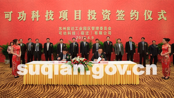 4月9日上午,落戶(hù)園區(qū)、總投資3億美元的可功科技(宿遷)有限公司項(xiàng)目在市區(qū)星辰國(guó)際酒店正式簽約。該項(xiàng)目是繼可成科技(宿遷)有限公司項(xiàng)目落戶(hù)園區(qū)之后,臺(tái)灣可成集團(tuán)在宿遷追加的又一重大投資項(xiàng)目。省經(jīng)信委、商務(wù)廳、國(guó)土廳等部門(mén)領(lǐng)導(dǎo),蘇州市副市級(jí)干部、蘇州工業(yè)園區(qū)“走出去”領(lǐng)導(dǎo)小組副組長(zhǎng)沈小鷹,可成集團(tuán)董事長(zhǎng)洪水樹(shù)、總經(jīng)理洪天賜,市領(lǐng)導(dǎo)繆瑞林、藍(lán)紹敏、卜平、王益、潘玉利、顧玉坤等出席項(xiàng)目投資簽約儀式。市委副書(shū)記、市長(zhǎng)藍(lán)紹敏主持簽約儀式。