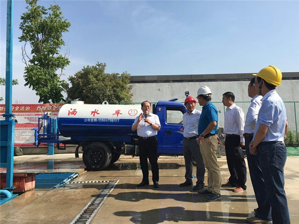 觀摩中,李榮錦對園區(qū)揚塵治理工作給予了高度評價,對現(xiàn)場自動沖洗設施、灑水車、文化教育長廊、施工展示區(qū)等一系列先進做法表示充分肯定,并要求在全市范圍內(nèi)推廣。